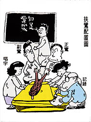 主要是扶乩飛鸞以桃柳倣彫鸞狀為筆,由正鸞生執筆,由神靈揮毫題字於砂盤或布盤,以傳真神意而度化人,這種宗教活動的形態其歷史淵源來自三個時期:一、清代的宣講制度。二、明清的文人箕壇。三、明代以來的民教團。 清代的宣講制度 宣講制度始於清順治九年(1652年)頒行六諭,令地方官責成鄉的人等,每月朔、望宣講。此六諭文,令地方官責成鄉的人等,每月朔、望宣講。此六諭文為:第一訓:孝父母。第二訓:尊敬長上。第三訓:和睦鄉里。第四訓:教訓子孫。第五訓:各安生理。第六訓:毋作非為。從這六諭中,可探知早期鸞堂活動宗旨,是以提倡人倫道德,從善棄惡的宗教形態。到了康熙九年禮部因「近見風俗日漓,人心不古,囂凌成習,僭濫多端,狙詐之術日工,獄訟之興靡已。」於是欽奉上論頒行,化民成俗十六條例。分發各直府省卅縣鄉村,永遠遵行,並照例於月朔舉行講解。到了雍正二年(1724年)又御製《聖諭廣訓》萬言,就是將康熙所頒行之十六條聖諭加以推衍其文,尋繹其義。並且乾隆,嘉靖年間也曾一再降旨,通令各地廣為宣示,於是宣講制度推行於地方鄉社,屬於地方官的職責。 除了縣官設立宣講外,也有文人自立宣講。地方士紳,以其文學口才,又能樂善向道,因此,分組輪流,到各村里廟前代天宣化,講因果,說報應,藉以喚醒民心,共趨正道。 由地方士紳組織的宣講,初是一種社團集會,後與神壇結合,推廣了《聖諭廣訓》的內容,著重於講因果報應的民間思想色彩。這種宣講制度遂改變為民間宗教活動,成為神道設教的由來。宣講制度設立,初以教化為先,輔助王法之不足,收化民成俗之效,等到宣講制度與民間習俗混合為一時,形成了重因果講報應的宗教活動,以神道設教來共存天理,共守王法。因此,由宣講制度與民間成立代天宣化的宗教組織,在立意上是一脈相承的,也可以說神道設教的目的是繼承了宣講制度化民成俗。以儒家神教教規,來體會儒宗神教與宣講制度的歷史淵源。 |
