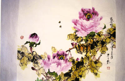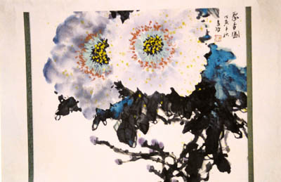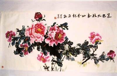 在中國,牡丹花象徵富貴,很多人把它視為吉祥的好采頭,在大陸有許多畫家和李孝哲一樣專愛畫牡丹。他說,他曾經擔任過五年的美工設計,專門在床單和手絹上作畫,市場反應很好,很受大陸人的喜愛。