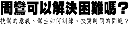 答:扶鸞如一般所謂「執乩」,執乩所寫聖文,上可以闡宣神意,下可以度己拯人,故以上天的鸞鳥取名,以代表吉祥,表示乩文可啟發人們的智慧,可助人分辨善惡,可帶給人們吉利祥和。如果神職人員受過良好的訓練,懂得鸞文真下的意思,是不會曲解鸞文的意義的。