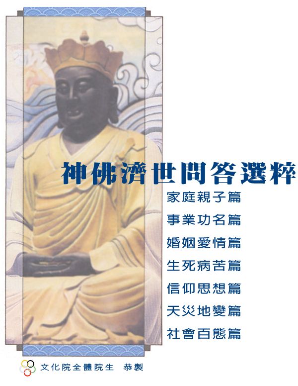 文化院神佛基於慈憫之心,乃大開方便法門,協助眾生找回真我,並建立自我信心,以發揮潛能。任何人面臨生活難題,而找不到答案的,都可以在「濟世服務」時來院登記,請示神佛,作客觀的討論與協助,不分宗教種族,不必添香付費,只要抱持信心,照著神佛所指示的道理與方法去做,便沒有不能解決的問題。